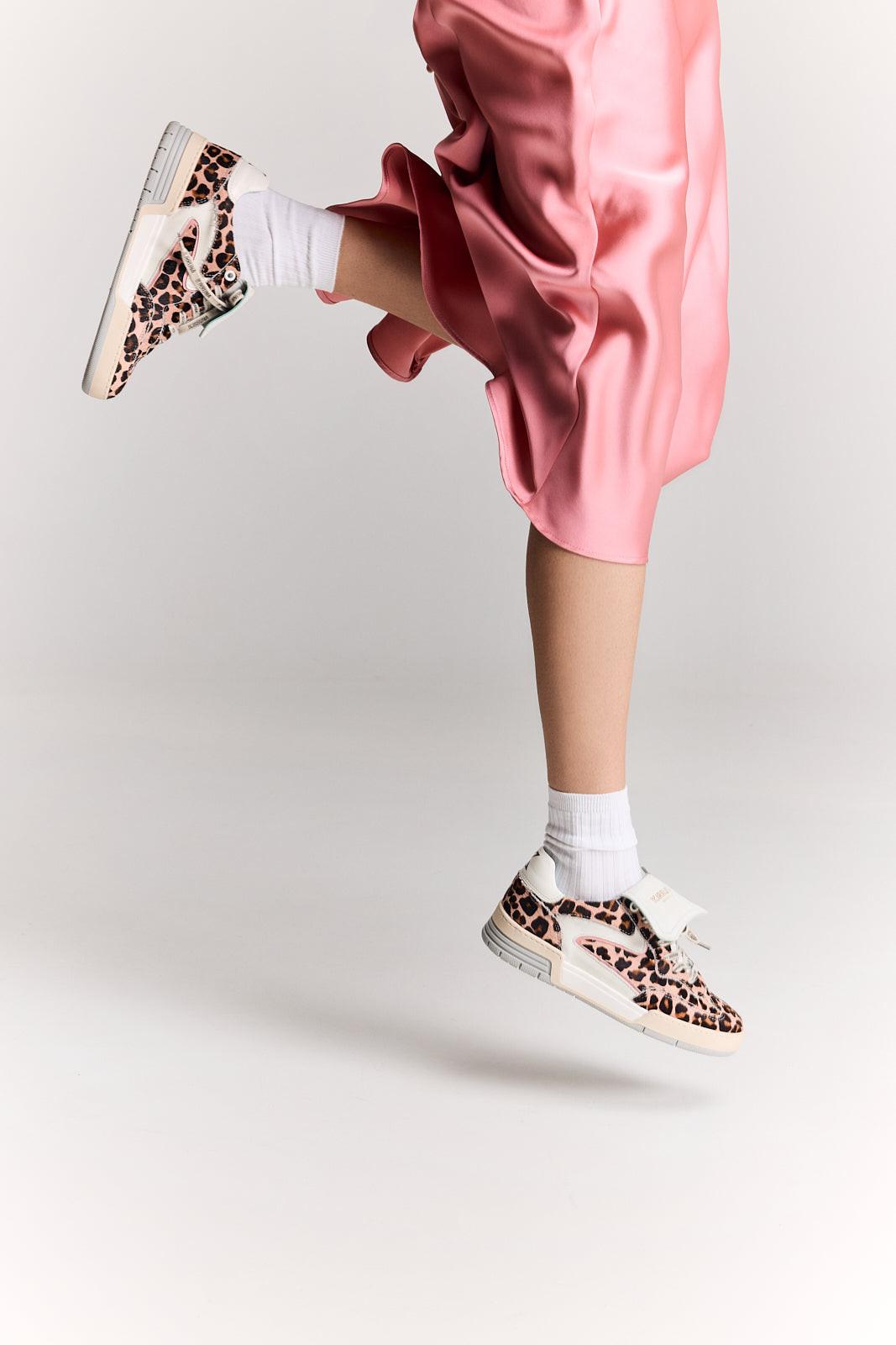 Features: Upper: Leopard-print fabric with white leather accents Sole: Durable, cushioned sole for support and comfort Closure: Lace-up with tonal... Lees meer