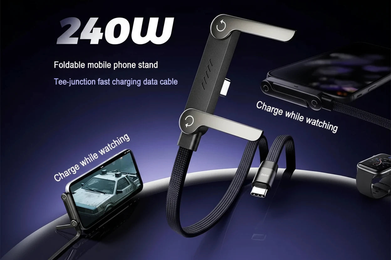 240W Fast Charging Foldable iPhone Holder Data Cable
