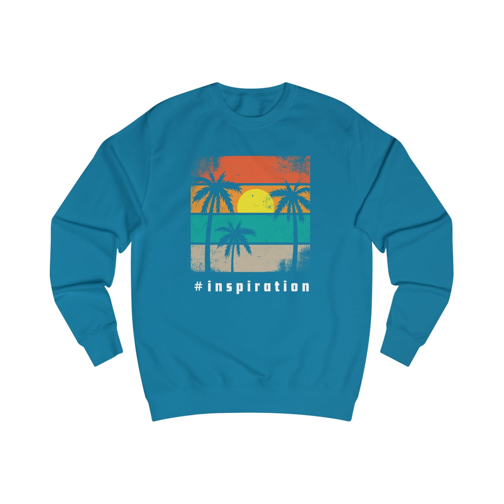 Lightweight warmth meets sun-soaked nostalgia. This sweatshirt carries a faded retro sunset and palm silhouette across the chest — like a postcard from an evening walk along the boardwalk. It settles softly on the shoulders and keeps its shape, so you’ll reach for it on cool seaside nights, casual weekend escapes, or when you want a quiet reminder of sand between your toes. Clean lines and a relaxed, stylish fit make it easy to layer over tees or pair with denim. The distressed print and muted stripes feel lived-in and familiar, the kind of piece that quietly becomes part of your favorite rituals: warm drinks after a beach bonfire, dusk bike rides, or road trips with the windows down.